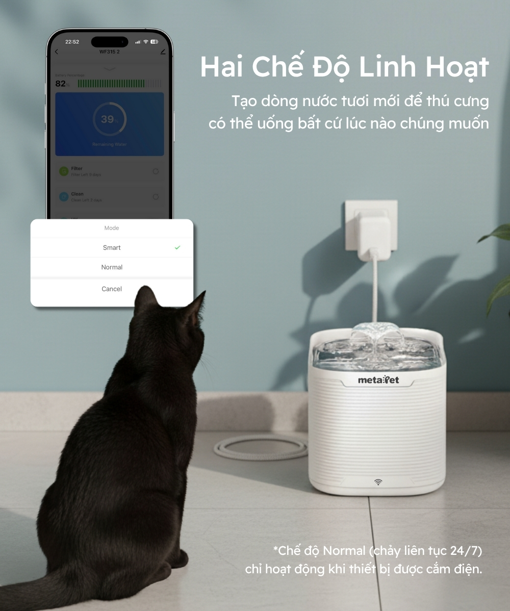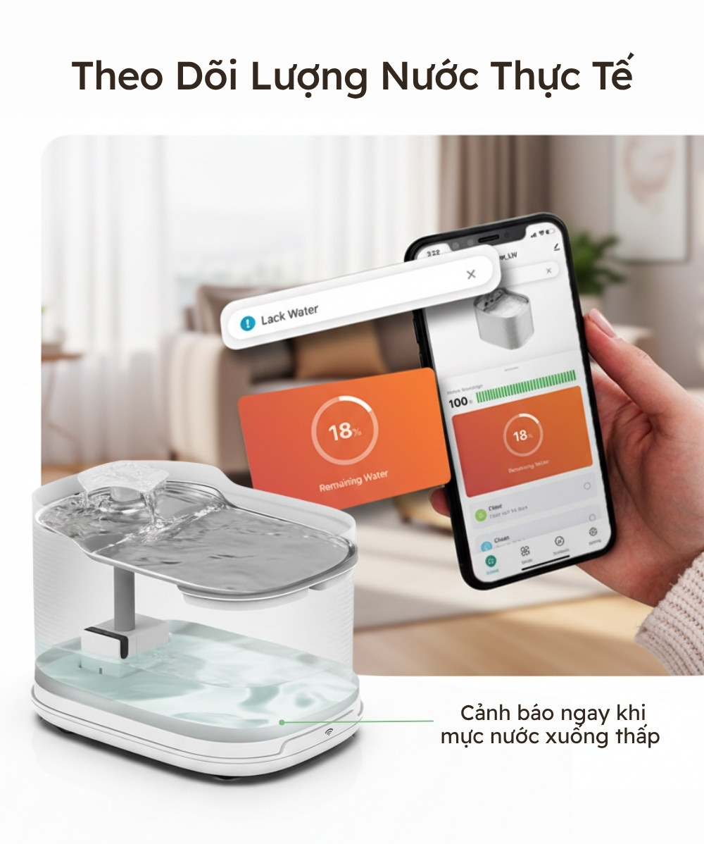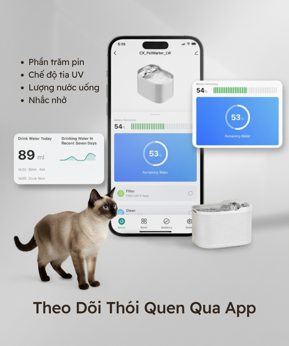 A: Với dung tích 2.5L, máy có thể đáp ứng nhu cầu uống nước từ 1–3 ngày tùy vào số lượng thú cưng và mức độ vận động.