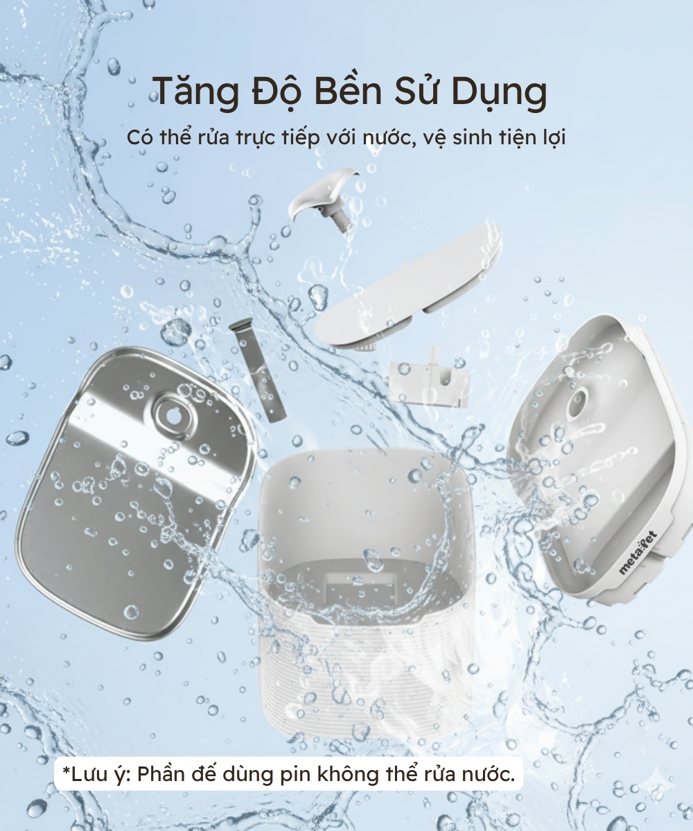 Dung tích phù hợp, vận hành êm ái và vật liệu an toàn mang lại sự tiện nghi và yên tâm tuyệt đối cho mọi gia đình nuôi thú cưng.