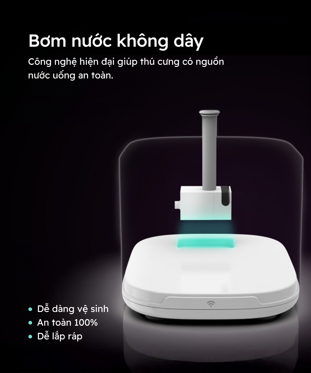 A: Máy phù hợp cho mèo và chó nhỏ – trung bình, đặc biệt hiệu quả với thú cưng ít uống nước cần được khuyến khích uống nước nhiều hơn.