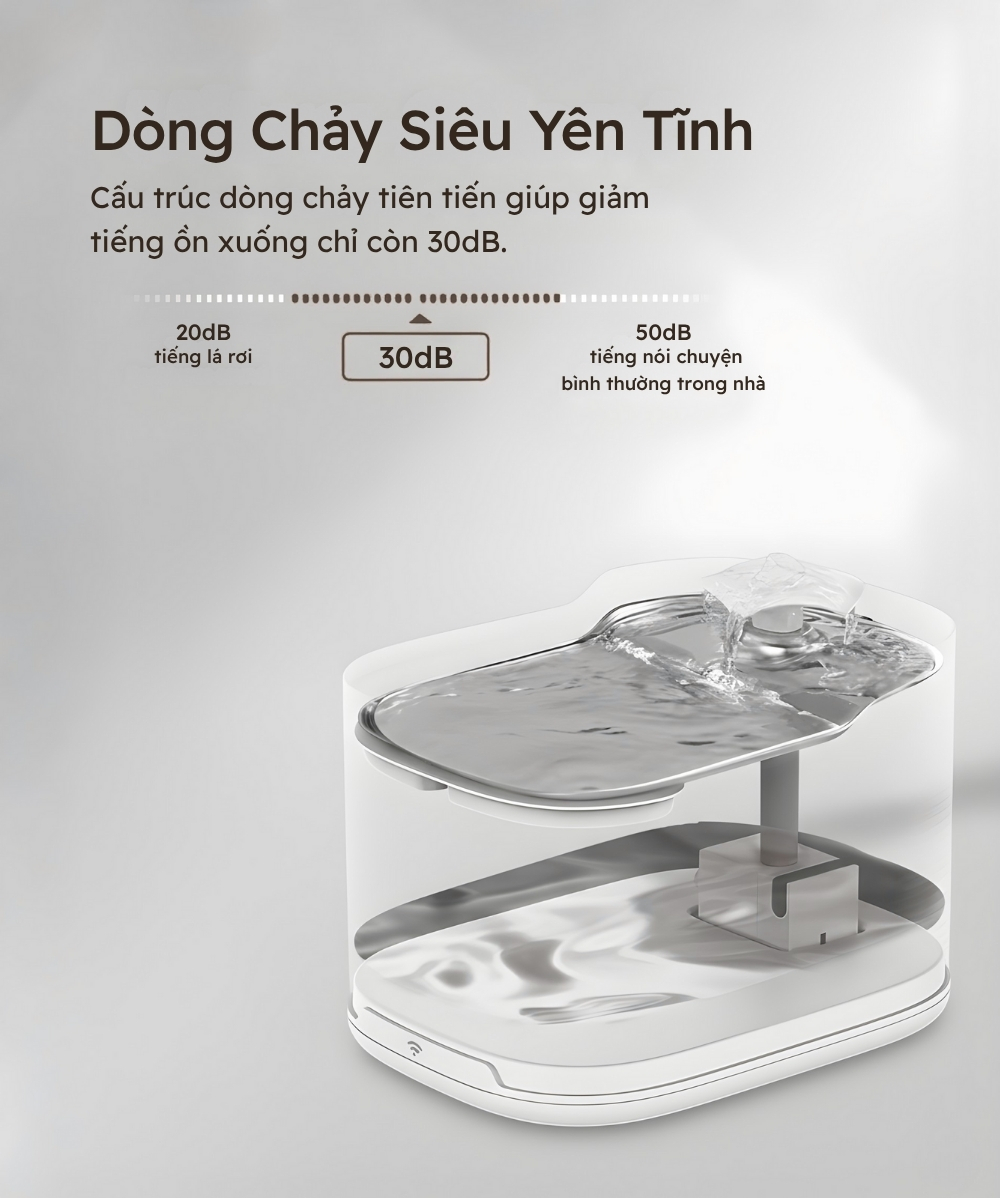 Máy tự động kích hoạt dòng chảy khi thú cưng đến gần, vừa tạo sự thu hút tự nhiên, vừa giảm tiêu thụ điện và kéo dài tuổi thọ máy bơm.