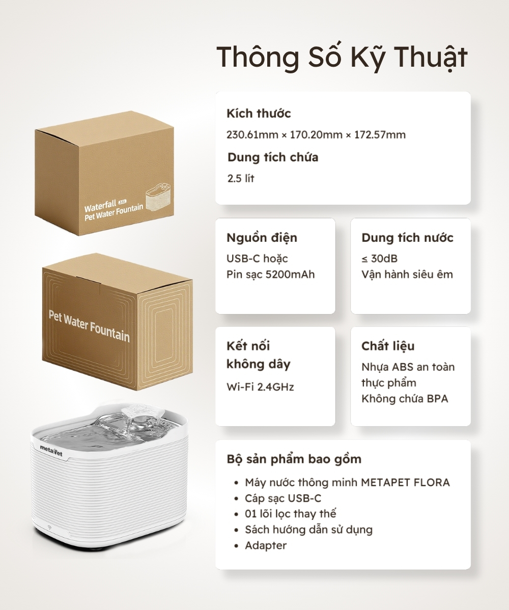 Để sở hữu máy lọc nước METAPET FLORA 2.5L, khách hàng có thể liên hệ trực tiếp với METAPETS VIỆT NAM — kênh phân phối chính thức của thương hiệu metaPet. Sản phẩm được cam kết 100% chính hãng, đi kèm đầy đủ chính sách bảo hành và dịch vụ hậu mãi chuyên nghiệp.
